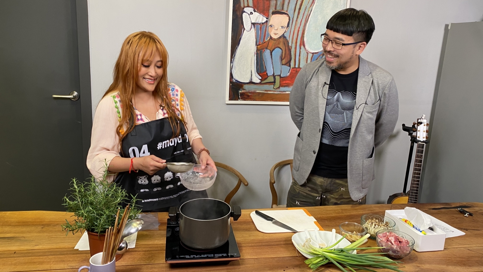 家家平時就愛下廚,蒸、煮、烤、炸都難不了她,近來為了防疫幾乎足不出戶的她,在家裡施展廚藝,做得不亦樂乎!不過她一個人住,一個人的食材份量不好掌控,每次煮完菜後,除了偶爾和姊姊紀曉君分享,就只有自己一個人能消化了,因此她決定準備幾道拿手菜,找來好友赤木邊聊邊煮邊唱!