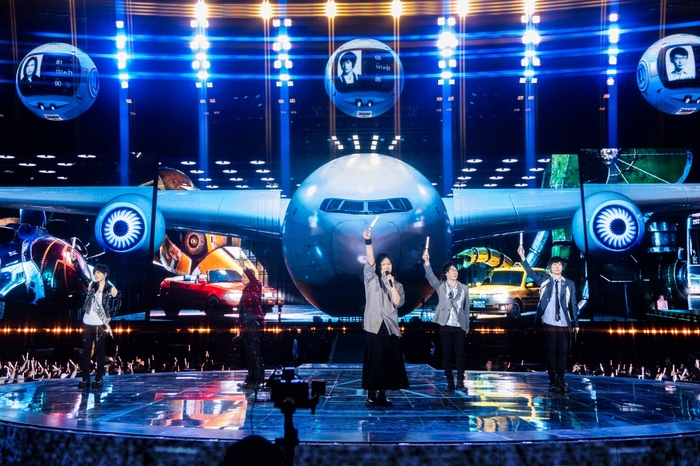 五月天帶著5525+1主題《回到那一天》25週年巡迴演唱會回到起點臺中,臺中站新年快樂版,全為你+1,27日首場難得放送後台更衣秀,投影到現場的大銀幕上,全場歌迷嗨翻。五月天重返台中,丁噹也乘著「天外有天時光機」回到2024年台中的那一天,那天丁噹特別來觀看師兄演唱會,今天丁噹為了呼應+1的主題,特別+1帶了10位舞者擔任嘉賓,也勾起「北投舞王」五月天阿信的舞魂,跨年代的舞曲組曲以及〈派對動物〉、〈離開地球表面〉,沸騰全場的細胞一起跳動。