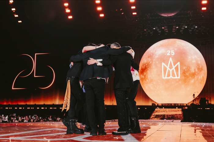 有你們在的每一天都是最好的一天!五月天5525+1《回到那一天》25週年巡迴演唱會台中站新年快樂版,繞行世界一大圈,唱過二個春夏秋冬,6260000人次笑淚感動交織的乾杯,五月天台中演唱會4日來到最終場,阿信說:「以前還沒有高鐵,來到台中是坐客運,和大家過著一樣的人生,也許是我寫出了讓你聽得感同身受的歌。」五月天表示雖然演唱會看一場少一場,不過就算五月天沒有舉辦演唱會,只要戴起耳機,五月天的音樂還是陪伴大家,以一首一首音樂陪著你們一起前進,和五月天在演唱會上用力的吶喊,用力的歡呼,在現實中用力的生活,等到下一次再見面。